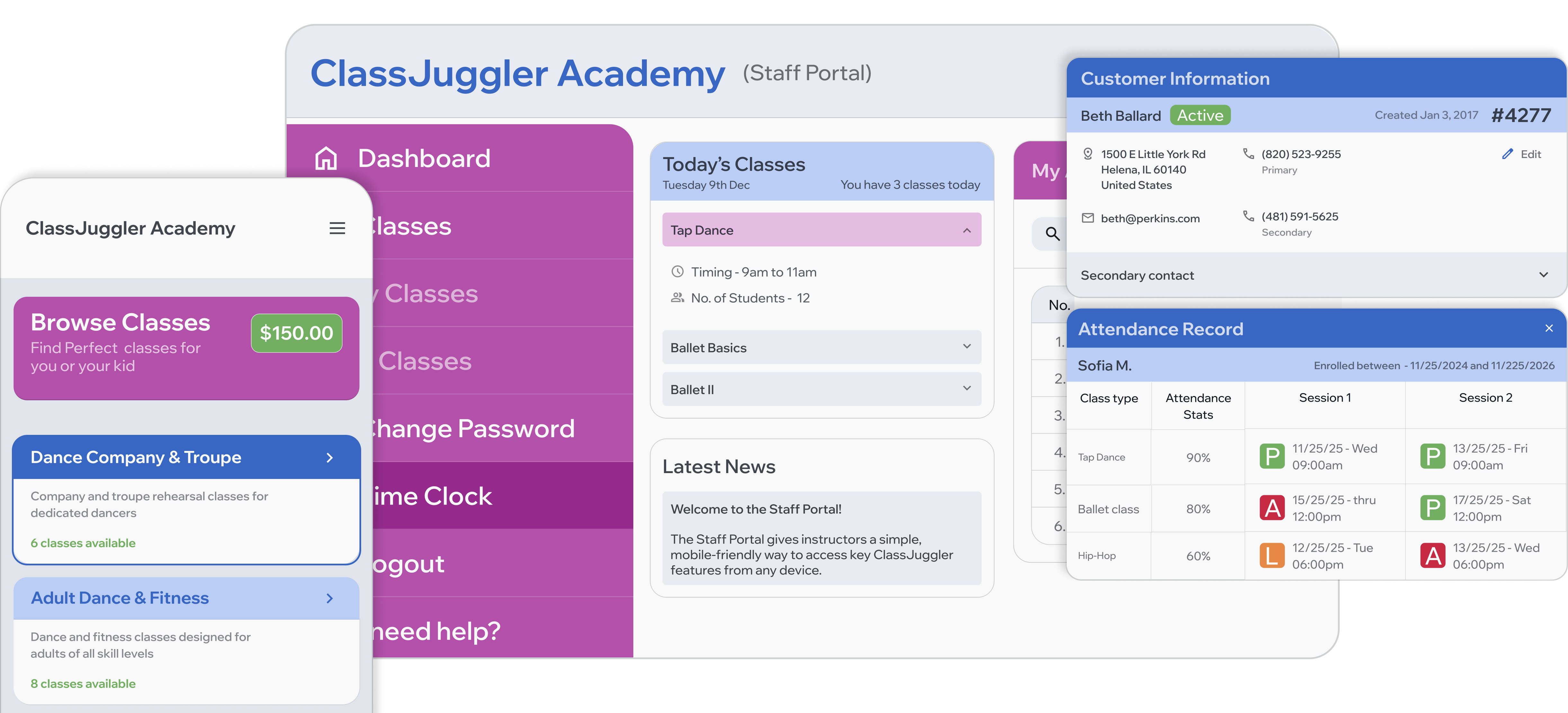 Seamless customer managementSeamless customer managementSimple, yet powerful customer portal delivers an effortless customer and student management experience.Simple, yet powerful customer portal delivers an effortless customer and student management experience. Single place for communication from studios via email or texts.